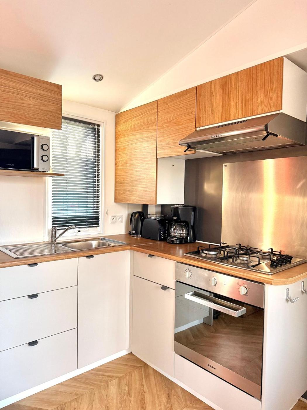 Mobile Home. This air-conditioned mobile home is comprised of 1 living room, 2 separate bedrooms and 1 bathroom with a shower. In the fully equipped kitchen, guests will find a stovetop, a refrigerator, kitchenware and an oven. Featuring a terrace with garden views, this mobile home also offers a tea and coffee maker and a flat-screen TV with streaming services. The unit offers 4 beds.