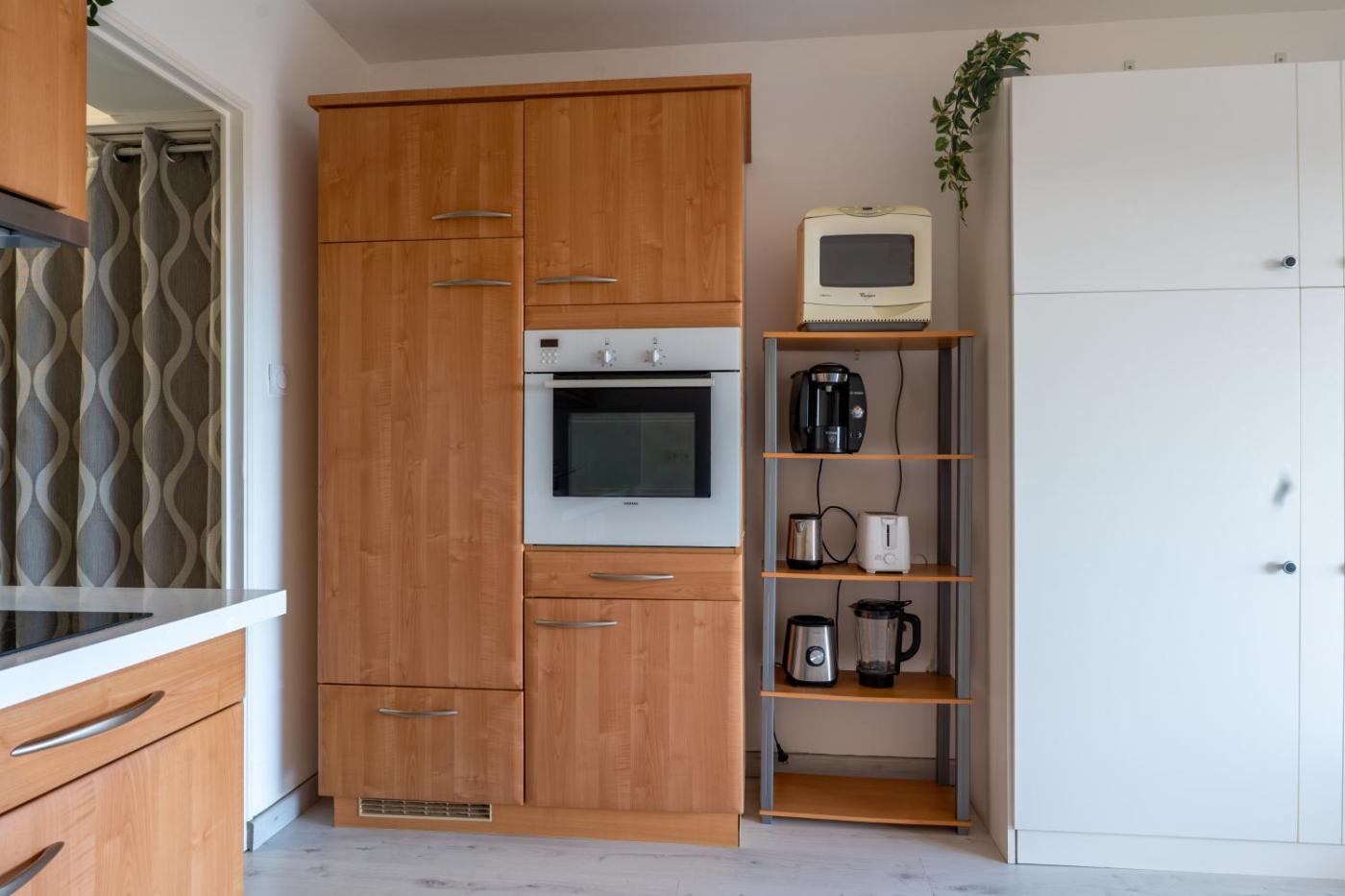 Cet appartement comprend une télévision. La kitchenette est pourvue d’un réfrigérateur, d’un lave-vaisselle et d’un four. Elle est également dotée d’une machine à café.