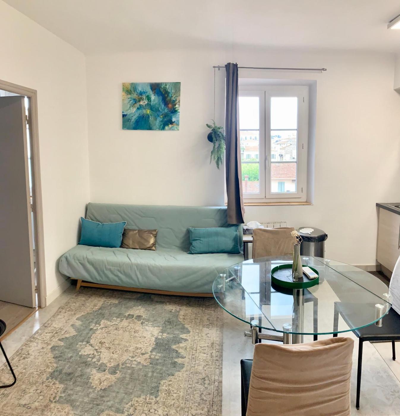 Appartement 1 Chambre. This apartment has a toaster, microwave and tumble dryer. This appartement is located on the 4th floor with no elevator.