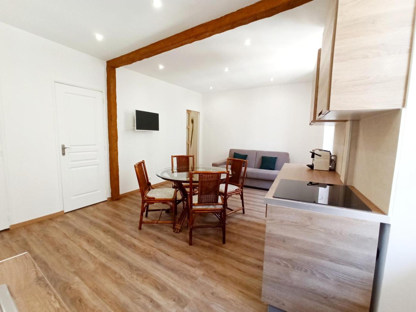 Studio (4 Adultes). This apartment features 1 living room, 1 separate bedroom and 1 bathroom with a shower and free toiletries. The fully equipped kitchen has a stovetop, a refrigerator, kitchenware and an oven. The air-conditioned apartment features a TV, a coffee machine, a seating area, a dining area as well as city views. The unit has 2 beds. ;