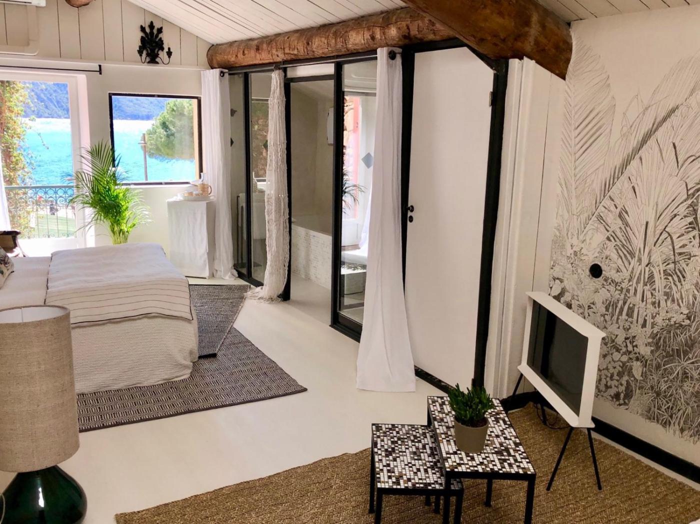 Chambre Double - Vue sur Mer - 1. Cette chambre dispose de la climatisation et d’une terrasse avec vue sur la mer. Elle comporte une télévision à écran plat, un plateaubouilloire, un minibar et une salle de bains pourvue d’une baignoire. ;