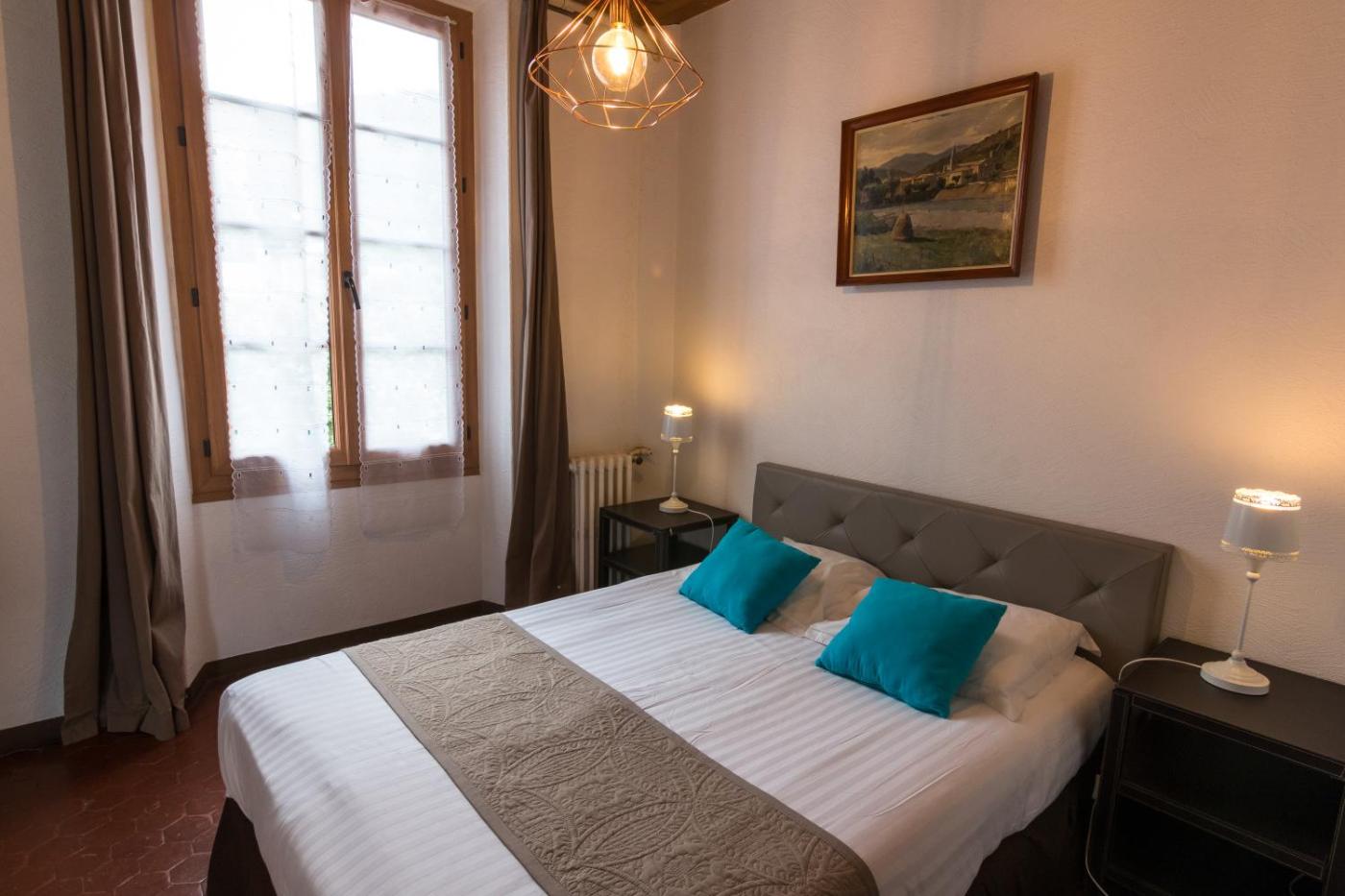 Chambre Triple. Comfortable Triple Room with Garden View or Castellane’s Main Square View Perfect for a stay with family or friends, this triple room features one large double bed and one single bed, as well as a private bathroom with a shower and toilet. You’ll also find a television for your entertainment and a convenient luggage rack. From the room, you can enjoy pleasant views of the garden or the charming main square of Castellane. Please note: our rooms do not have a safe, mini-bar, or air conditioning. ;