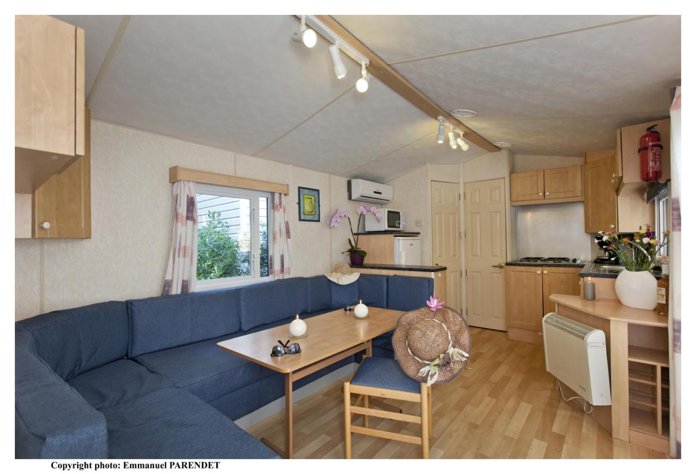 Mobile Home 2 Chambres Confort. Ces mobile homes disposent de la climatisation, d’une terrasse meublée, de 2 chiliennes, de 2 chambres, d’une cuisine, d’un coin salon ainsi que d’une salle de bains privative pourvue d’une douche et de toilettes séparées. Les oreillers et les couvertures sont fournis. Le linge de lit et les serviettes de toilette sont fournis moyennant des frais supplémentaires. ;