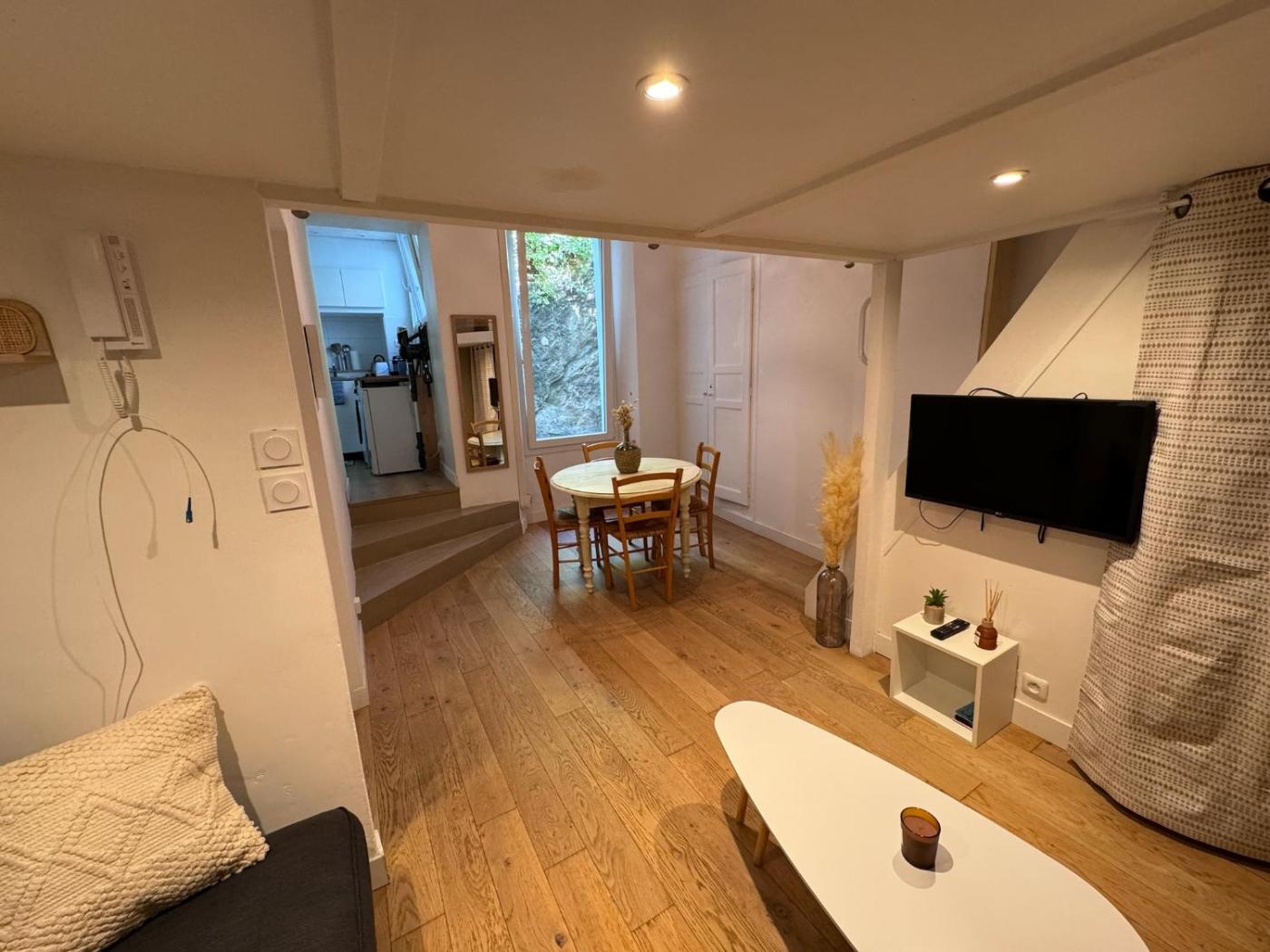 Appartement 1 Chambre. In the fully equipped kitchen, guests will find a stovetop, a refrigerator, kitchenware and a microwave. This apartment is air-conditioned and has a seating area with a flat-screen TV, a washing machine, a private entrance, a tea and coffee maker, as well as a dining area. The unit has 2 beds.