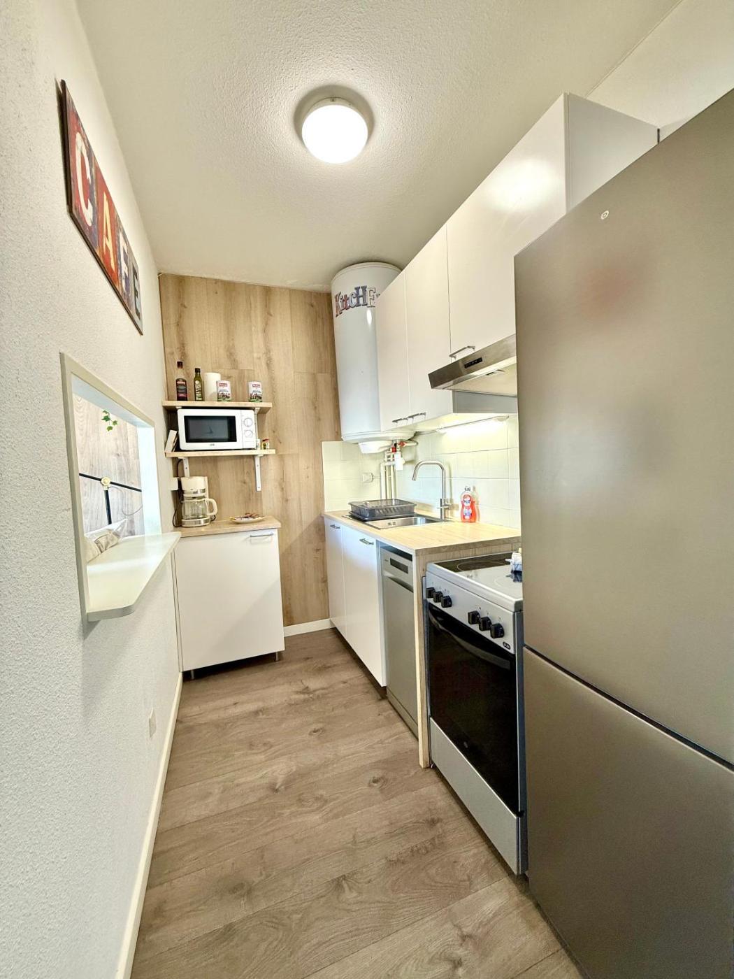 Studio Standard. The studio provides air conditioning, a washing machine, as well as a private bathroom featuring a bath and a hairdryer. The well-equipped kitchen features a stovetop, a refrigerator, a dishwasher and kitchenware. This studio has a tea and coffee maker, a wardrobe, a TV and a balcony. The unit offers 2 beds.