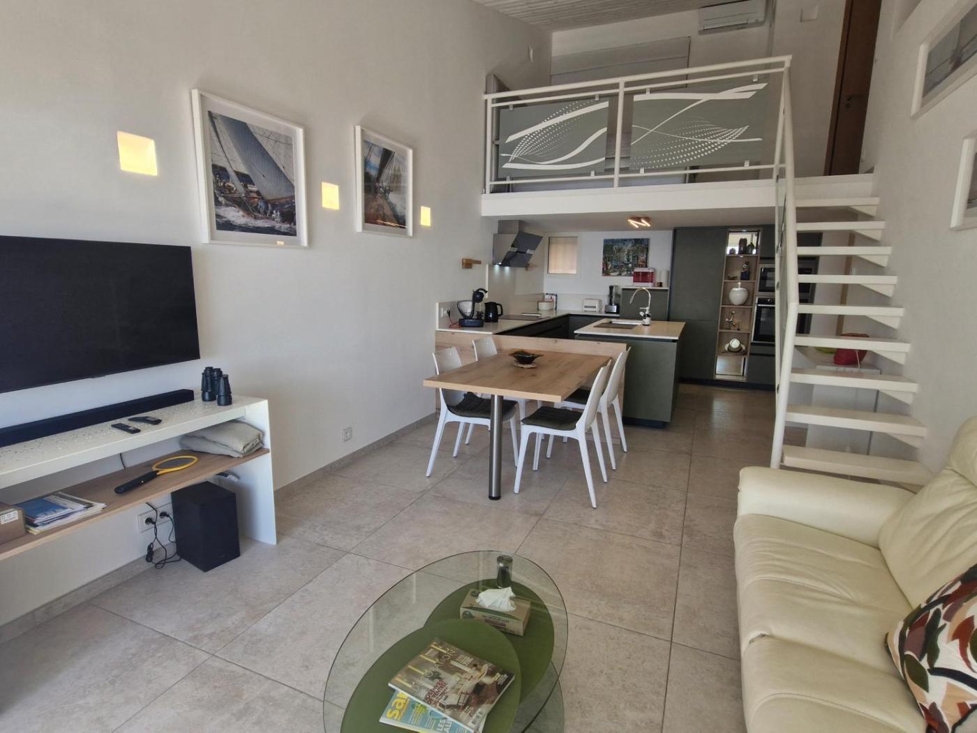 Appartement. This spacious apartment is comprised of 2 bedrooms, kitchen, a terrace and 2 bathrooms with a shower. Meals can be prepared in the kitchen, which is fitted with a stovetop, a refrigerator, a dishwasher and kitchenware. The air-conditioned apartment offers a TV, a washing machine, a private entrance, a dining area as well as sea views. The unit offers 1 bed.
