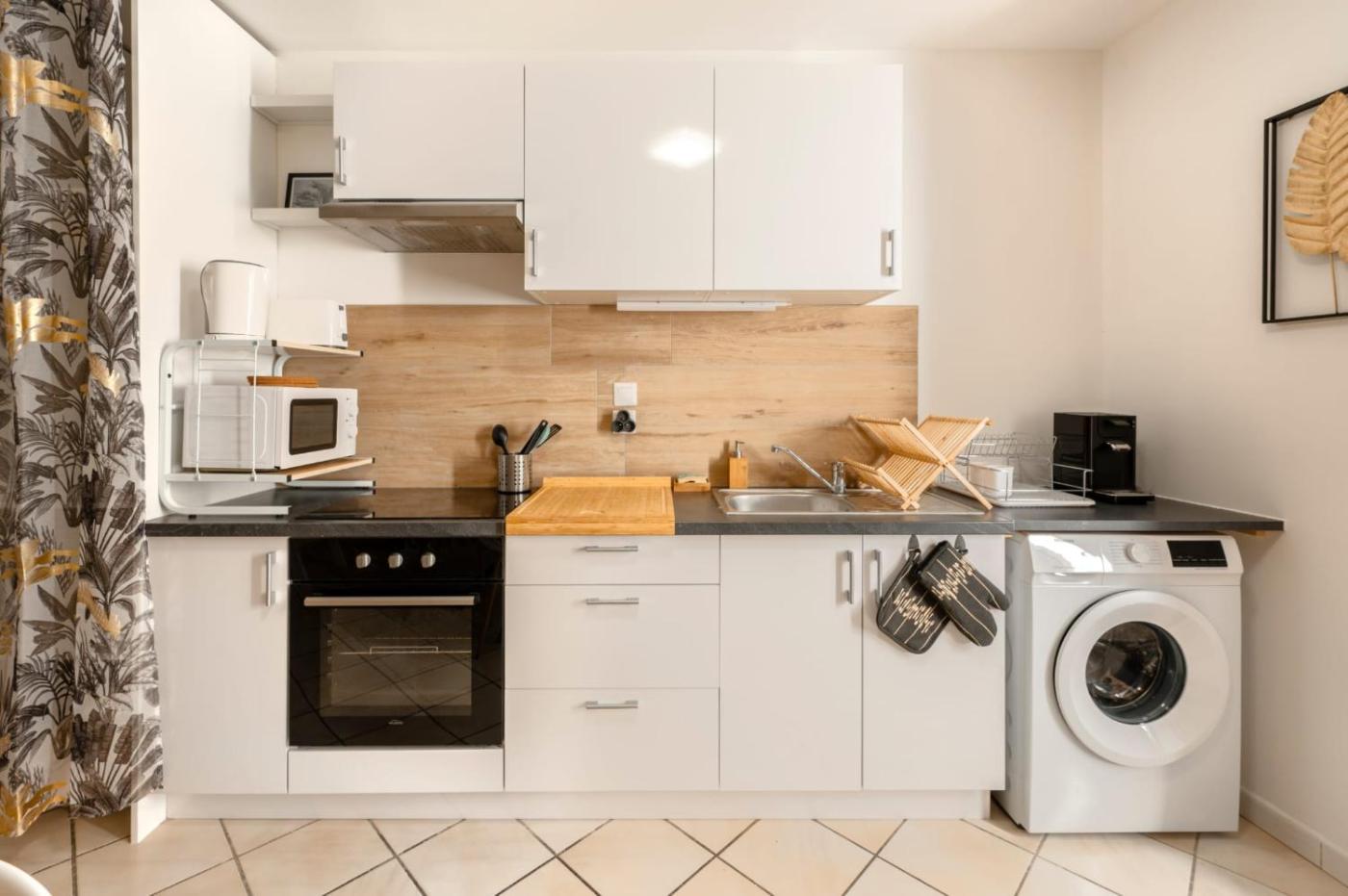 Appartement - Vue sur Ville. The apartment features a wardrobe, a dressing room, as well as a private bathroom featuring a shower and a hairdryer. Meals can be prepared in the well-fitted kitchen, which is fitted with a stovetop, a refrigerator, kitchenware and an oven. The apartment offers a flat-screen TV with streaming services, a washing machine, soundproof walls, a tea and coffee maker as well as a quiet street view. The unit offers 2 beds.