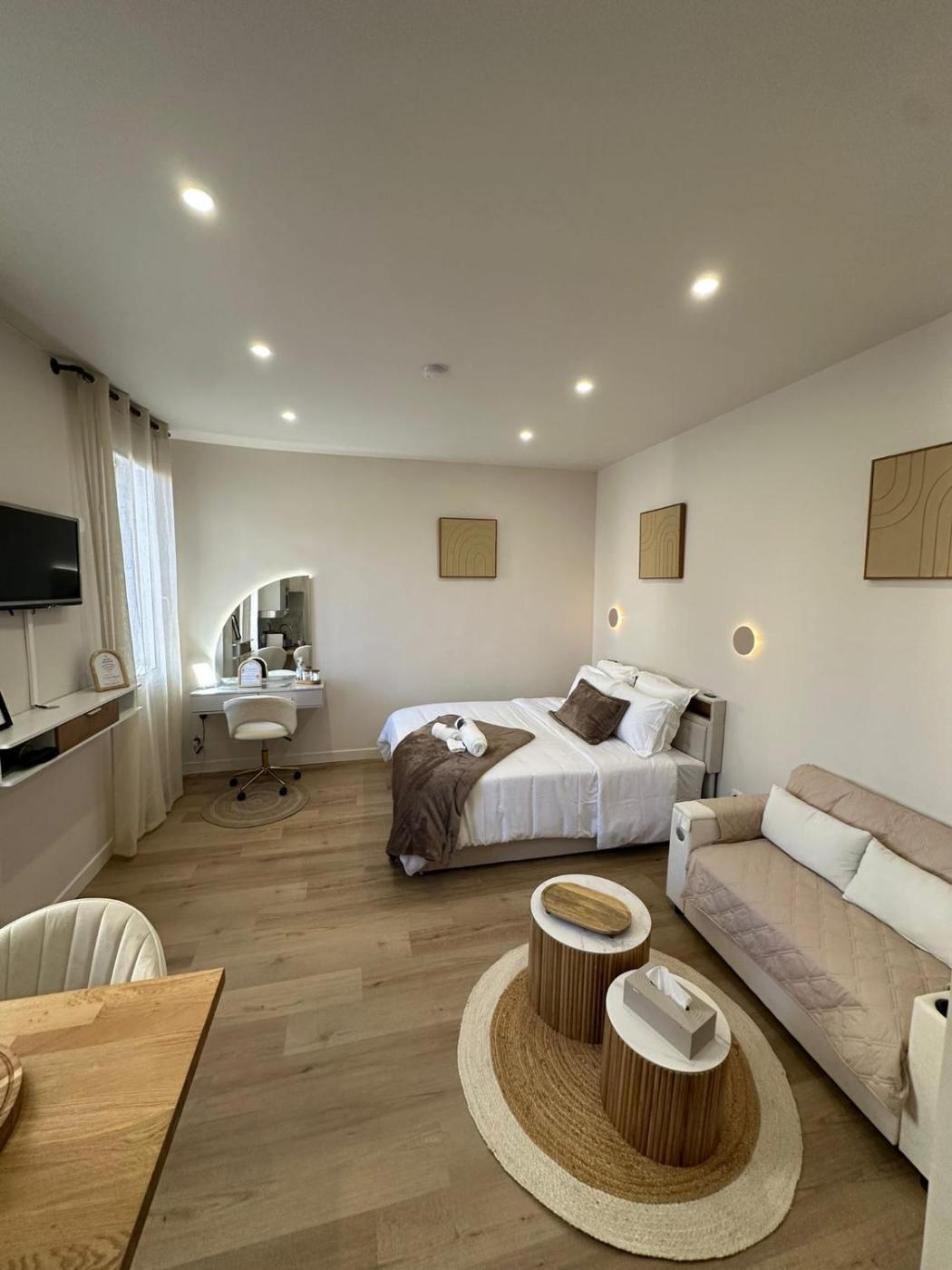 Appartement 1 Chambre. The apartment features 1 bedroom and 1 bathroom with a bath or a shower and free toiletries. The well-fitted kitchenette has a stovetop, a refrigerator, kitchenware and a microwave. The apartment offers a coffee machine, a dining area, a wardrobe, a flat-screen TV, as well as ancourtyard view. The unit offers 2 beds.