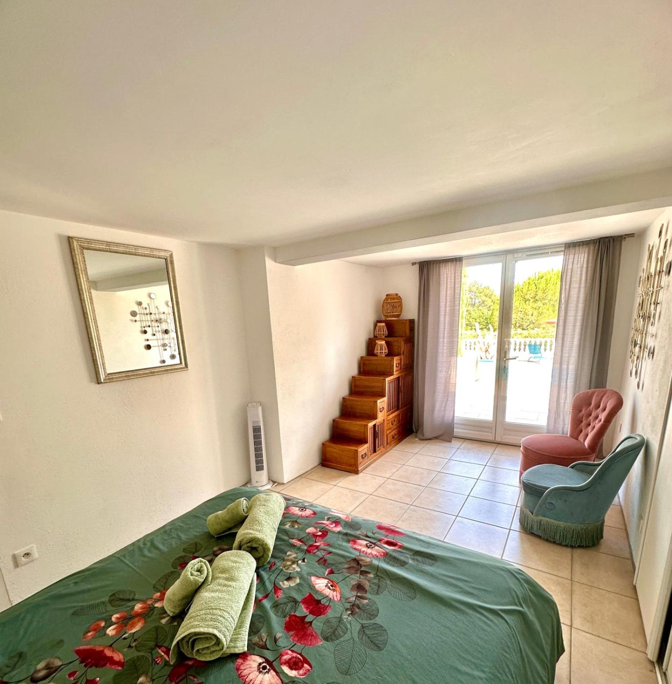 Studio Familial. Guests will have a special experience as this family room features a pool with a view. In the kitchen, guests will find a stovetop, a refrigerator, a dishwasher and kitchenware. The spacious family room offers a washing machine, a private entrance, a terrace with garden views as well as a private bathroom featuring a shower. The unit offers 2 beds.