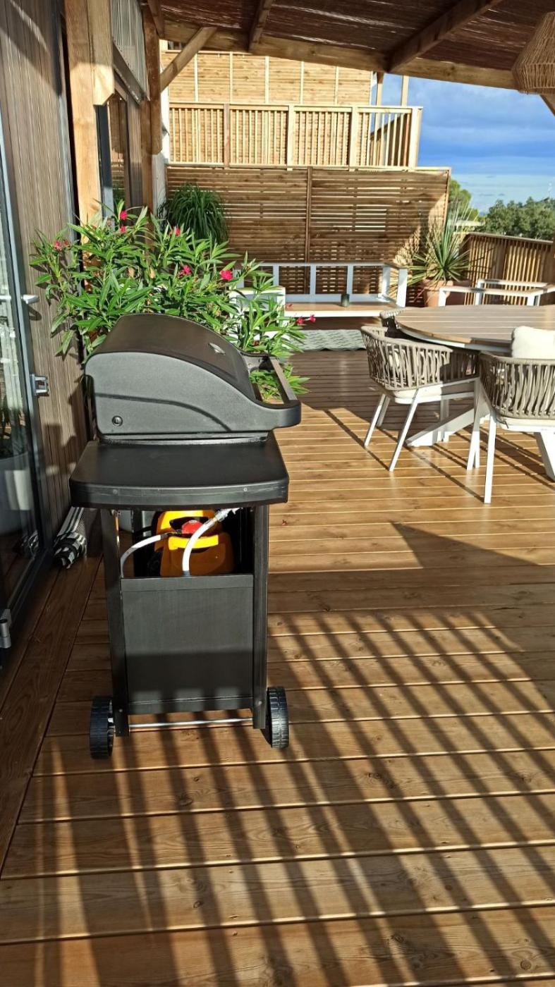 Mobile Home. Guests will have a special experience as this mobile home offers a pool with a view and a hot tub. Featuring a private entrance, this air-conditioned mobile home consists of 1 living room, 3 separate bedrooms and 2 bathrooms with a shower and a hairdryer. Guests will find a stovetop, a refrigerator, a dishwasher and kitchenware in the well-equipped kitchen. The mobile home also offers a barbecue. Boasting a terrace with sea views, this mobile home also provides a tea and coffee maker and a flat-screen TV with satellite channels. The unit offers 1 bed and 4 futons.