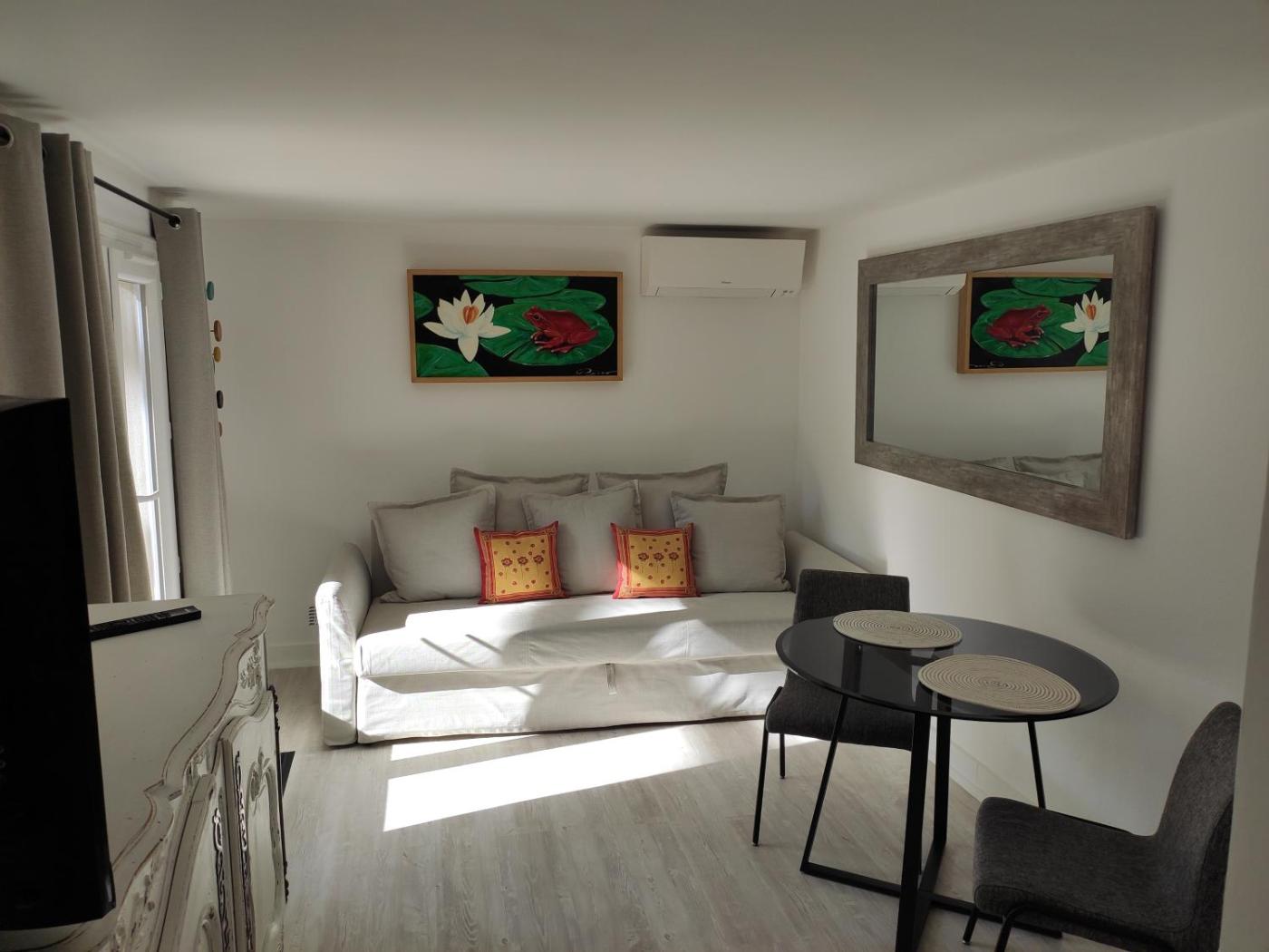 Appartement 1 Chambre. This apartment is comprised of 1 living room, 1 separate bedroom and 1 bathroom with a shower and free toiletries. Meals can be prepared in the kitchenette, which comes with a stovetop, a refrigerator, kitchenware and a microwave. The air-conditioned apartment offers a flat-screen TV, a washing machine, a tea and coffee maker, a seating area as well as garden views. The unit offers 2 beds.