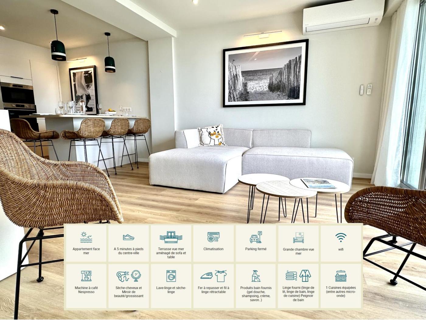Appartement 2 Chambres. Boasting a private entrance, this air-conditioned apartment features 1 living room, 2 separate bedrooms and 1 bathroom with a shower and a hairdryer. Guests can make meals in the kitchen that has a stovetop, a refrigerator, a dishwasher and kitchenware. Featuring a balcony with sea views, this apartment also features a washing machine and a flat-screen TV with cable channels. The unit has 2 beds.