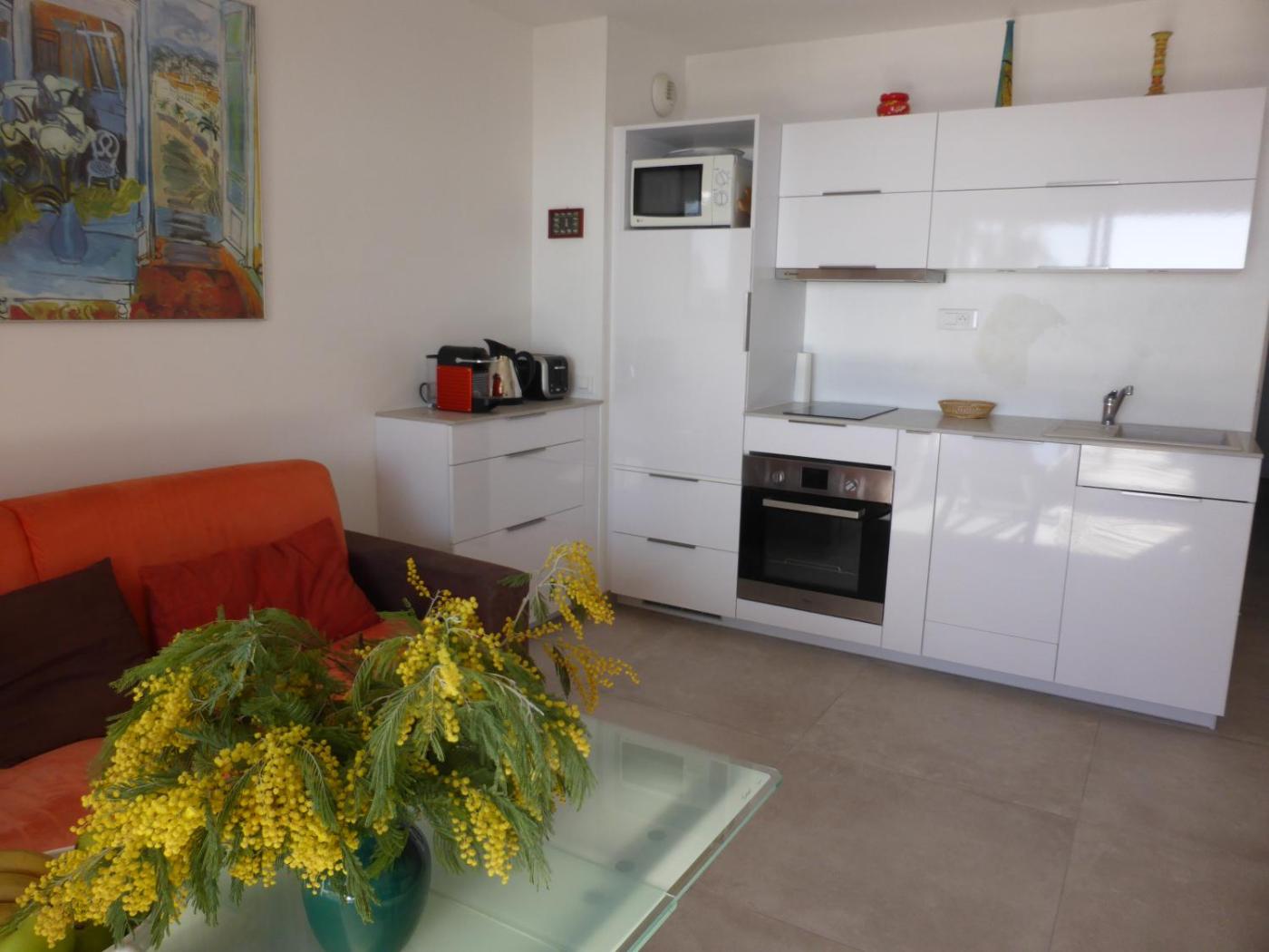 Appartement - Vue sur Mer. This apartment has a tilemarble floor, garden view Air conditioning and Dishwasher and electric kettle.